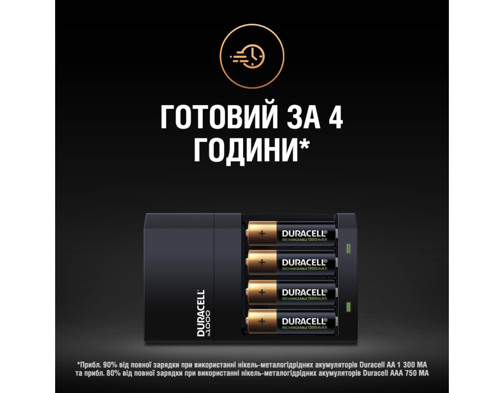 Зарядний пристрій Duracell Hi-Speed готовий за 4 години (приблизно 90% від повної зарядки при використанні нікель-металогідрідних акумуляторів Duracell AA 1 300 МА та приблизно 80% від повної зарядки при використанні нікель-металогідрідних акумуляторів Duracell AAА 750 МА ). Зарядний пристрій Duracell Hi-Speed – це просте, безпечне і надійне рішення, щоб ви ніколи не пропустили жодної важливої події у своєму житті. Зарядний пристрій Duracell Hi- Speed має індикатор часткової зарядки та автоматичне відключення, щоб запобігти перегріву, коли акумулятори повністю заряджені. Завдяки 9 функціям безпеки у вас є необхідна потужність без будь-яких турбот. На зарядний пристрій надається 5-річна гарантія, тож ви можете насолоджуватися продуктами Duracell протягом тривалого терміну служби щодня. Почніть нову пригоду з повною потужністю, високою продуктивністю та хорошою ціною - іншими словами, насолоджуйтеся ідеальним балансом. |