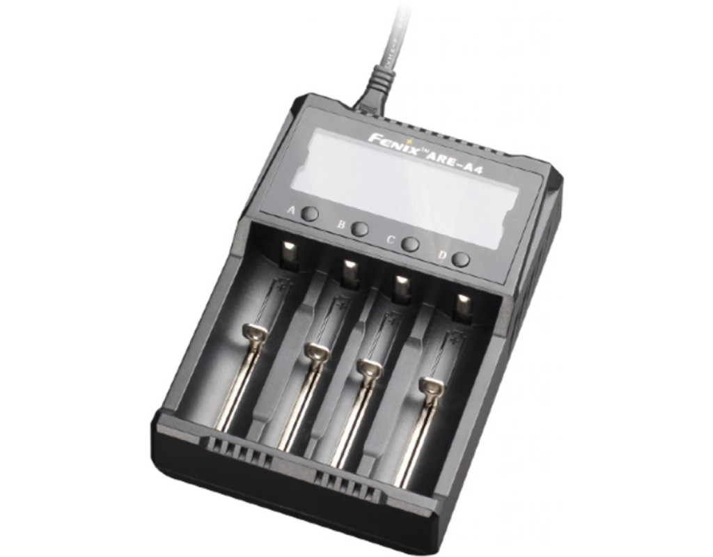 Хороший зарядний пристрій стане в нагоді в кожному будинку, адже в нинішній час безліч видів важливоъ техніки працює на акумуляторах. А якщо мова йде про поїздку, відрядження, подорожі, то важливо, щоб такий пристрій був ще і універсальним. Адже набагато зручніше взяти з собою всього одну модель для зарядки всіх елементів живлення, ніж цілу сумку індивідуальних. Таким універсальним пристроєм для зарядки акумуляторів є Fenix ARE-A4. Ця модель працює з 9 різновидами акумуляторів. В тому числі, це літій-іонні, нікель-кадмієві та нікель-металгідридні акумулятори форматів 18650, 14500, 26650, АА, ААА, 16340, 10440, С, 21700. У Fenix ARE-A4 присутні 4 слота для установки акумуляторів. Вони розташовані поруч, але працюють абсолютно автономно, що дозволяє навіть одночасно заряджати батареї абсолютно різних форматів. Пристрій самостійно їх ідентифікує і підбере потрібну програму роботи. Користувач ж всі важливі дані може побачити на вбудованому екрані. На ньому відображаються тип і напруга батареї, сила струму для зарядки, час зарядки і поточний стан. Причому, останній з перерахованих параметрів вказується за допомогою зображення батарейки, заповненої в тій чи іншій мірі. Якщо батарейка заповнена всього однієї миготливою рискою, значить заряд акумулятора в реальності не перевищує 20%. Якщо блимає друга рисочка, то заряд дорівнює 20% -40%, третя - 40% -60%, четверта - 60% -80%, п'ята - 80% -99%. Коли зображена повністю заповнена батарейка - процес зарядки завершений і акумулятор можна виймати з пристрою. Використовувати Fenix ARE-A4 можна практично в будь-якій ситуації. Базовий комплект включає в себе кабель для стандартної електромережі 220В. Але в даній моделі також передбачена функція підключення до автомобільного акумулятора для роботи в дорозі. Такий кабель не складно буде купити додатково. Також виробники подбали про довговічність зарядного пристрою. Воно отримало захист від переполюсовки, якщо користувач встановить елементи живлення не тим боком, від короткого замикання. Акумулятори в ході заряджання не перегріваються, пристрій відразу ж відключає канал після завершення процесу. Особливості: