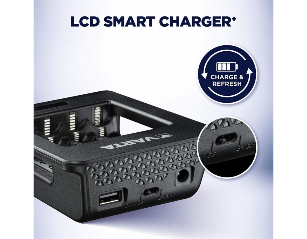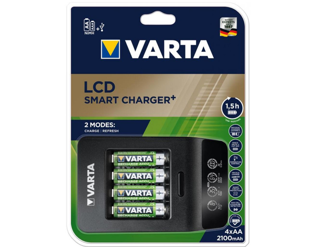 Функції захисту: Захист від короткого замикання, Мінус Дельта V «відключення», Контроль температури, Таймер безпеки, Виявлення лужних і поганих комірок; Зарядний струм, до: 800 мА, 1600 мА; Додаткові характеристики: Зарядний USB порт, У комплекті AC адаптер, Інтелектуальне припинення зарядки, Покращена чутливість виявлення поганих комірок, Зарядка з одним слотом, 2 режими: зарядка та оновлення; |