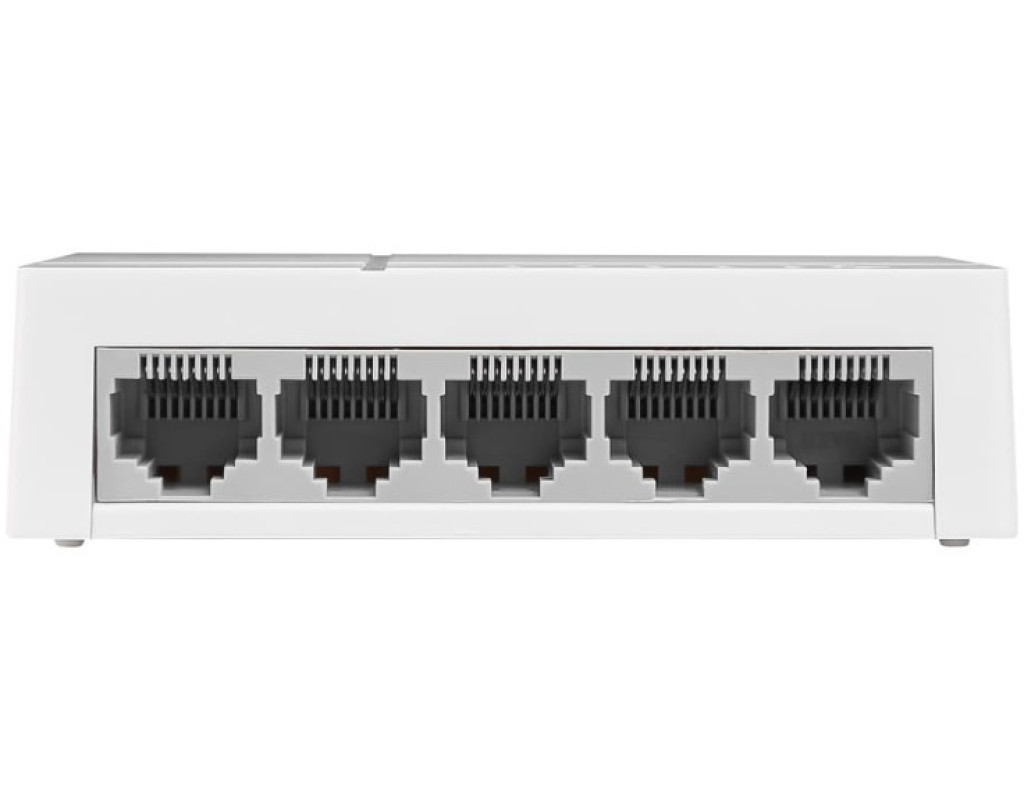 Комутатор оснащений 5 портами 100 Мбіт/с з автопогодженням і роз’ємами RJ45. Всі порти підтримують функцію авто-MDI/MDIX, усуваючи необхідність використання кабелю з перехресними парами або портів з підтримкою функції Uplink. Завдяки використанню неблокіруючіх архітектури комутатор може передавати і фільтрувати пакети на максимально можливій для мережного середовища швидкості для забезпечення максимальної пропускної здатності. Значним чином поліпшена передача файлів великого розміру за рахунок використання Jumbo-кадрів розміром 10 Кбайт. Контроль потоку IEEE 802.3x для повнодуплексного режиму і контроль зворотного потоку для полудуплексного режиму допомагають уникнути перевантажень і забезпечують надійну передачу даних, завдяки чому робота комутатора відрізняється великою надійністю. |