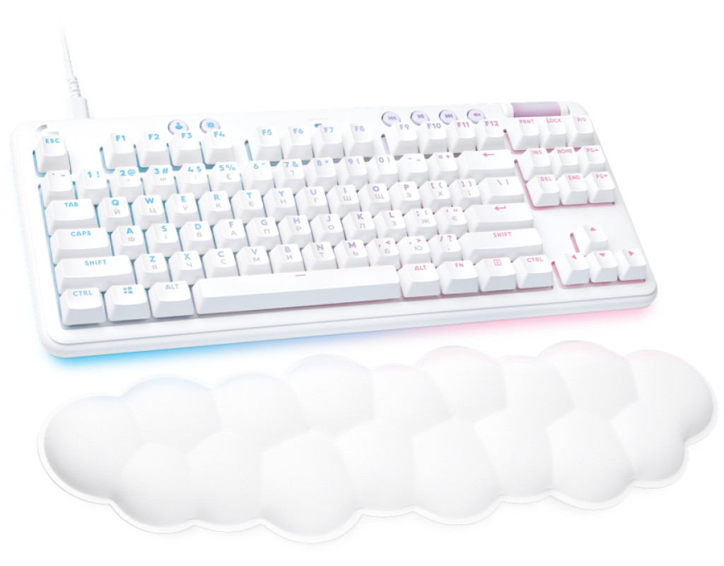 | G713 із колекції Aurora — це компактна дротова клавіатура, створена для зручності з м’якою підставкою для долонь. Повністю оснащена RGB-освітленням і механічними перемикачами GX Red Linear. Linear - тихий і має низьке тертя. Клавіатури серії Aurora виконані з опцією зміни клавіш та опцією зміни лицьової панелі, завдяки магнітному кріпленню. Змінні клавіші та панелі пропонуються для придбання додатково, в кольорах Rosa Pink Dawn, Verde Green Flash, White Mist. |