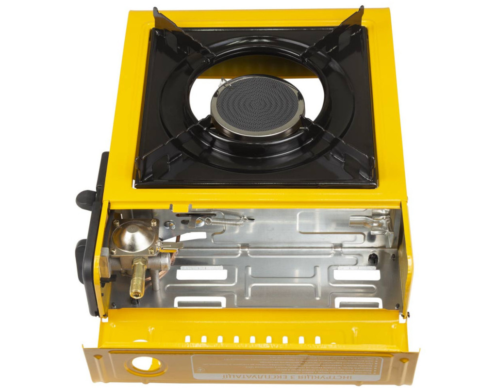 Завдяки використанню даної технології плита економить до 30% палива в порівнянні з туристичними плитами традиційної конструкції з аналогічною потужністю. Газова плита є сучасною та призначена для використання на дачі, у походах та під час тривалих подорожей. Модель має одну керамічну конфорку, потужність якої 3.5 кВт. Ця плита гарантує зручне приготування їжі в будь-якому місці. Внаслідок інфрачервоного пальника плита ідеально підійде для використання у вітряну погоду, не боячись, що полум'я згасатиме. Крім того, пристрій є безпечним в експлуатації. Конструкція надійна та продумана, тому газовий балон встановлюється усередині самої плити. Також ця модель оснащена клапаном контролю тиску. Модель економічна у використанні. У плитці встановлено регулятор потужності, що також забезпечує особливий комфорт. Модель має п'єзопідпал, який спрацьовує за будь-яких зовнішніх умов. Наявність п'єзопідпалу спрощує роботу з плитою, тому що немає необхідності мати під рукою сірники або запальничку. Паливо необхідне для роботи плити - цанговий газовий балон пропан/бутан 220г або багаторазові балони місткістю 5 л, 27 л і 50 л через адаптер. Діаметр шланга для підключення до перехідника – внутрішній 8 мм, зовнішній 12 – 14 мм (армований шланг для газу). Пакується у пластиковий транспортний кейс.