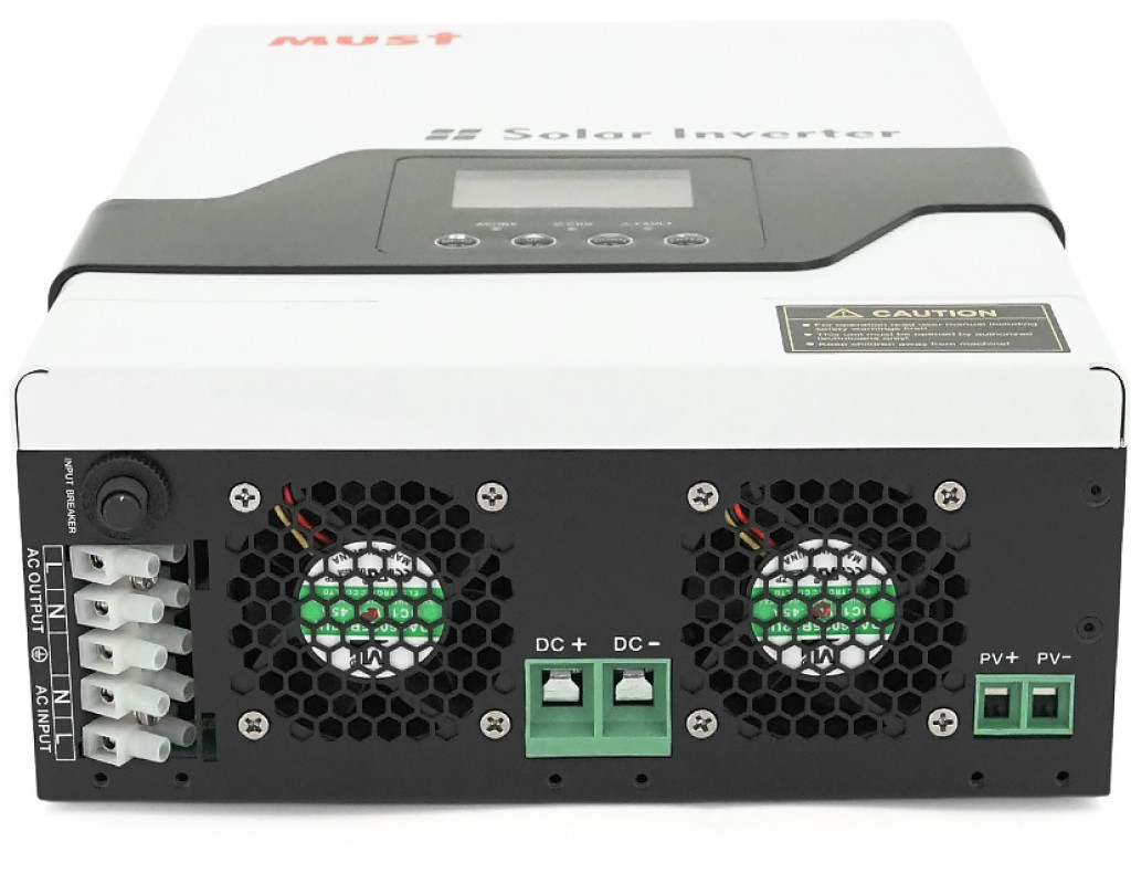 | Must PV18-1012VPM - інвертор потужністю на 1 kW із зовнішнім підключенням акумуляторів та чистою синусоїдальною формою напруги 220 V на виході. Має вбудований LCD дисплей, який дозволяє переглядати та конфігурувати основні параметри. Інвертор підджерює різні режими заряджання АКБ та подачі електроенергії споживачам за пріоритетами. Модель можна підключити до ПК та мобільних пристроїв через Wi-FI (опціонально). PV18-1012VPM має вбудований сонячний контролер заряду MPPT 15-105V / 60 А та зарядний пристрій від мережі з максимальним струмом до 20 А. Системна напруга АКБ 12 V. Можливе підключення АКБ типу AGM / GEL / LifeP04 (зі своєю вбудованою BMS) Для запуску інвертора потрібне підключення АКБ. Підтримка наступних режимів роботи: SUB, SBU, SOL, UEI. SUB (solar, utility, battery) - підключене навантаження у пріоритеті живиться від сонячної генерації, коли сонячної генерації недостатньо, різниця добирається з мережі. За відсутності сонячної генерації та мережі інвертор переходить працювати від АКБ. Must PV18-1012VPM допоможе організувати безперебійне електроживлення споживачам за невеликих витрат, а також знизити витрати на електроспоживання з мережі при використанні сонячної генерації. Компактний дизайн та просте управління робить монтаж та використання даного інвертора простим та зручним. Особливості: Вихідна потужність 1000 Вт / 1000 ВА Перевантажувальна здатність до 2000 Вт Чиста синусоїда на виході Сумісність із генераторами Автоматичний перезапуск після відновлення електропостачання Захист від перевантаження, короткого замикання та перегріву Функція холодного запуску Напруга АКБ 12 В Тип батарей, що підключаються: літієві та свинцево-кислотні Максимальний струм заряду від мережі 20 А Максимальний струм заряду від ФЕМ (PV модулів) до 60 А Можливість підключення до ПК Можливість підключення через WI-Fi (опціонально) Характеристики Підключення інвертора з боку АС 220 В Виробник Must Power Модель PV18-1012VPM Тип інвертора Автономний (Off-grid) Кількість фаз 1 Номінальна потужність 1000 Вт / 1000 ВА Пікова потужність 2000 Вт Вхідна напруга 170~280 В Вихідна напруга 230 ± 5 % від АКБ при збої мережі, 170 - 280 В в режимі AVR при стабілізації вхідної напруги Форма вихідної напруги Чиста синусоїда Частота мережі 50 / 60 Гц Час перемикання ≤ 10 мс Підключення до мережі клеми Підключення навантаження клеми Захист від короткого замикання, стрибків напруги, перевантаження, розряду, надлишкового заряду батарей Підключення інвертора з боку АКБ Тип батарей літієві, свинцево-кислотні BMS - Підключення батареї клеми Номінальна напруга АКБ 12 В Струм заряду (мережа + PV) 70 А Струм заряду (тільки мережа) 10 A / 20 А Ємність батарей, що підключається до 600 А*год Під`єднання інвертора з боку фотоелектричних модулів (з боку DC) Максимальна вхідна потужність 625 Вт Тип контролера MPPT Максимальна вхідна напруга 75 В Діапазон роботи MPPT 15~105 В Максимальний вхідний струм 60 А Кількість входів 1 Власне споживання 2 Вт Матеріал корпусу метал Габарити та вага 225*355*92 мм / 5.5 кг Температура експлуатації та вологість -15°C~ 60°C, вологість 5%~95% |