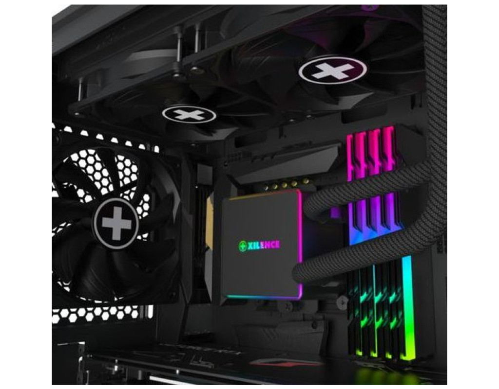 Квадратна головка насоса з великою потужною мідною пластиною, що охолоджує, і стриманим підсвічуванням ARGB ідеально вписується в картину і виглядає стильно. Гнучкі чорні шланги із елегантною оболонкою можна зручно прокласти у корпусі у будь-якій формі монтажу. |