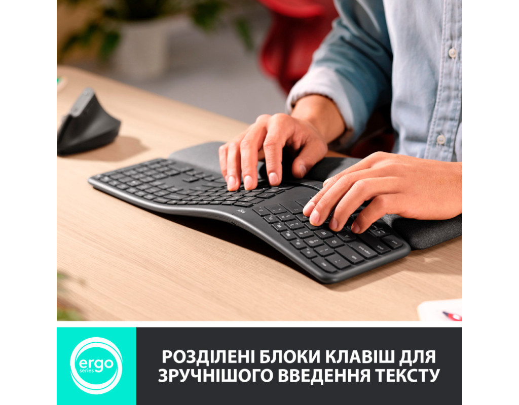 | Клавіатура Logitech ERGO K860 Bluetooth/Wireless UA Black (920-010108) — це справжнє втілення інновацій та зручності. Створена для тих, хто прагне поєднати комфорт роботи та високу продуктивність, ця модель пропонує сучасні рішення для повсякденних завдань. Однією з ключових переваг ERGO K860 є її ергономічний і анатомічно вивірений дизайн, який сприяє зменшенню м'язового напруження і забезпечує правильну поставу. Вона ідеально підходить для тривалої роботи завдяки мембранній конструкції, що надає м'який і тихий набір тексту. Клавіатура підтримує подвійну розкладку — англійську та українську, роблячи її універсальним вибором для користувачів з різними мовними потребами. Використовуйте технологію Easy-Switch для миттєвого перемикання між трьома сумісними пристроями на Windows або Mac OS, що значно полегшує роботу з кількома девайсами. Безперебійне бездротове з’єднання забезпечує USB-адаптер 2.4 ГГц або Bluetooth, з швидким і простим налаштуванням за кілька хвилин завдяки інтуїтивним інструкціям. У комплекті передбачені батарейки типу AAA, з якими ви можете забути про підзарядку протягом двох років, завжди контролюючи рівень заряду через індикатор. Легкість налаштування функціональних клавіш завдяки ПЗ Logitech Options дозволяє персоналізувати пристрій відповідно до ваших потреб. Тести, проведені експертами з ергономіки, підтверджують, що клавіатура ERGO K860 відповідає високим стандартам, гарантуючи підтримку здоров'я та комфорту користувачів. Обирайте надійну і сертифіковану клавіатуру ERGO K860 для ефективної та комфортної роботи щодня. |