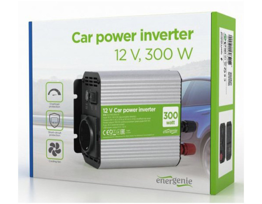 Автомобільний інвертор EnerGenie EG-PWC300-01 потужністю 300 Вт з одним гніздом. Дає змогу під'єднувати будь-яку електроніку з живленням від змінного струму (макс. 300 Вт), наприклад, ноутбуки, зарядні пристрої для мобільних телефонів/фотоапаратів, електричні інструменти тощо.