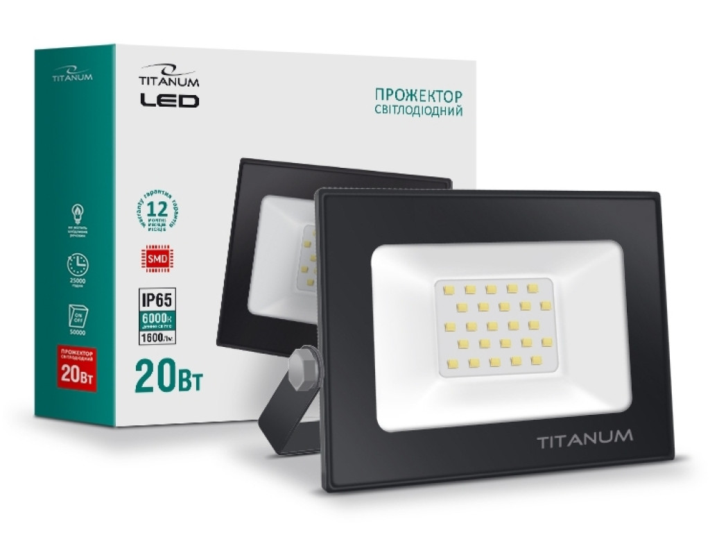 LED прожектор TITANUM 20W 6000K - високотехнологічне джерело світла. Забезпечує рівний світловий потік і максимальну потужність з першої секунди роботи. Призначений для загального і декоративного освітлення архітектурних об'єктів, торгових площ, рекламних щитів, створення світлових ефектів, освітлення відкритих територій приватних садиб і промислових підприємств. Світлодіодний прожектор TITANUM- екологічна і економічна заміна ламп розжарювання і люмінесцентних ламп. Корпус LED прожектора чудово протистоїть волозі, дощу, снігопадам та іншим погодним опадам. Клас захисту IP65. Під час роботи прожектора відсутнє мерехтіння, інфрачервоне або ультрафіолетове випромінювання. Колірна температура - 6000К (денне світло). Кут розсіювання світла - 120°, що дозволяє якісно освітити приміщення. Сила світлового потоку-80Лм/В, а сумарний світловий потік прожектора становить 1600Лм. Дозволяє економити до 80% енергії, має тривалий термін експлуатації і високу стійкість до навантажень під час вмикання та вимикання. Ресурс роботи - 25 000 годин. При підключенні напряму до мережі забезпечить стабільну роботу при перепадах напруги. Робоча напруга 185-265В. Наявність повноцінного драйвера. Не містить шкідливих речовин. |
