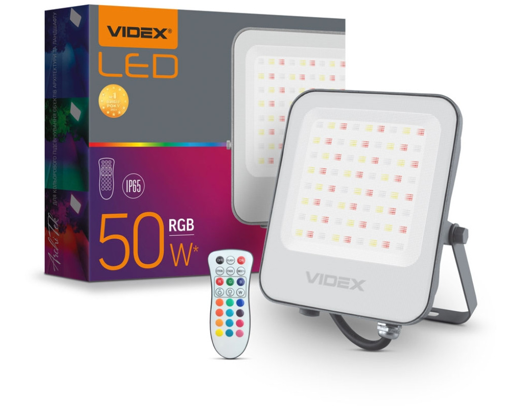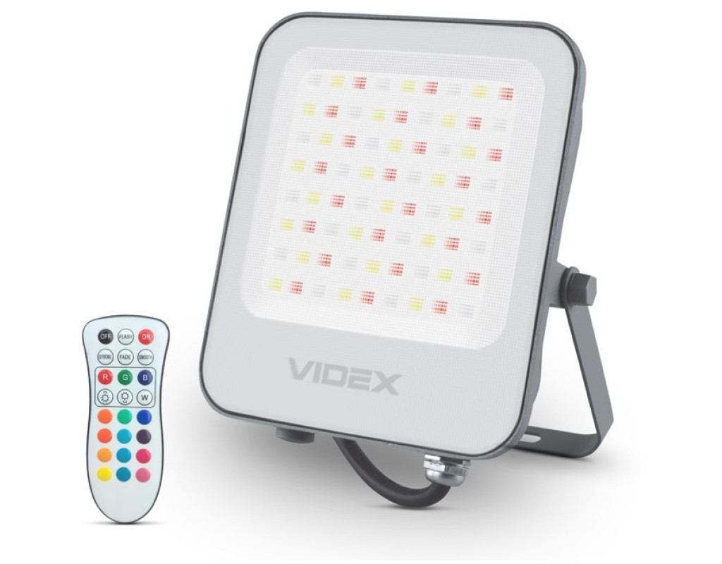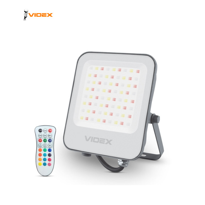 Світлодіодний RGB прожектор VIDEX - високотехнологічне джерело світла. RGB Прожектор оснащений світлодіодами, що надають змогу обирати та змінювати колір освітлення. Призначений для декоративного освітлення будівель, споруд пам'ятників архітектури, об'єктів ландшафту. Дозволяє керувати яскравістю та обирати режими освітлення за допомогою пульта дистанційного керуваня. Пульт дистанційного керування - Тип елемента живлення CR2025. Кнопка OFF дозволяє вимкнути прожектор. Кнопка ON на пульті дистанційного керування дозволяє увімкнути прожектор.