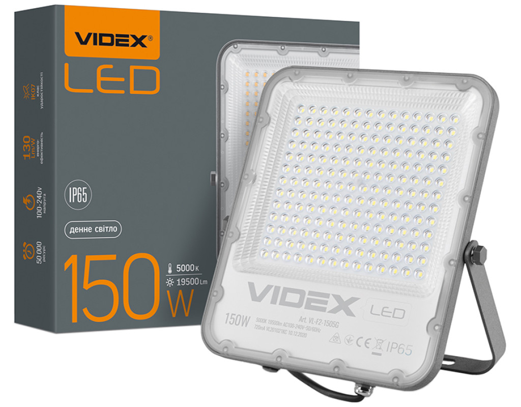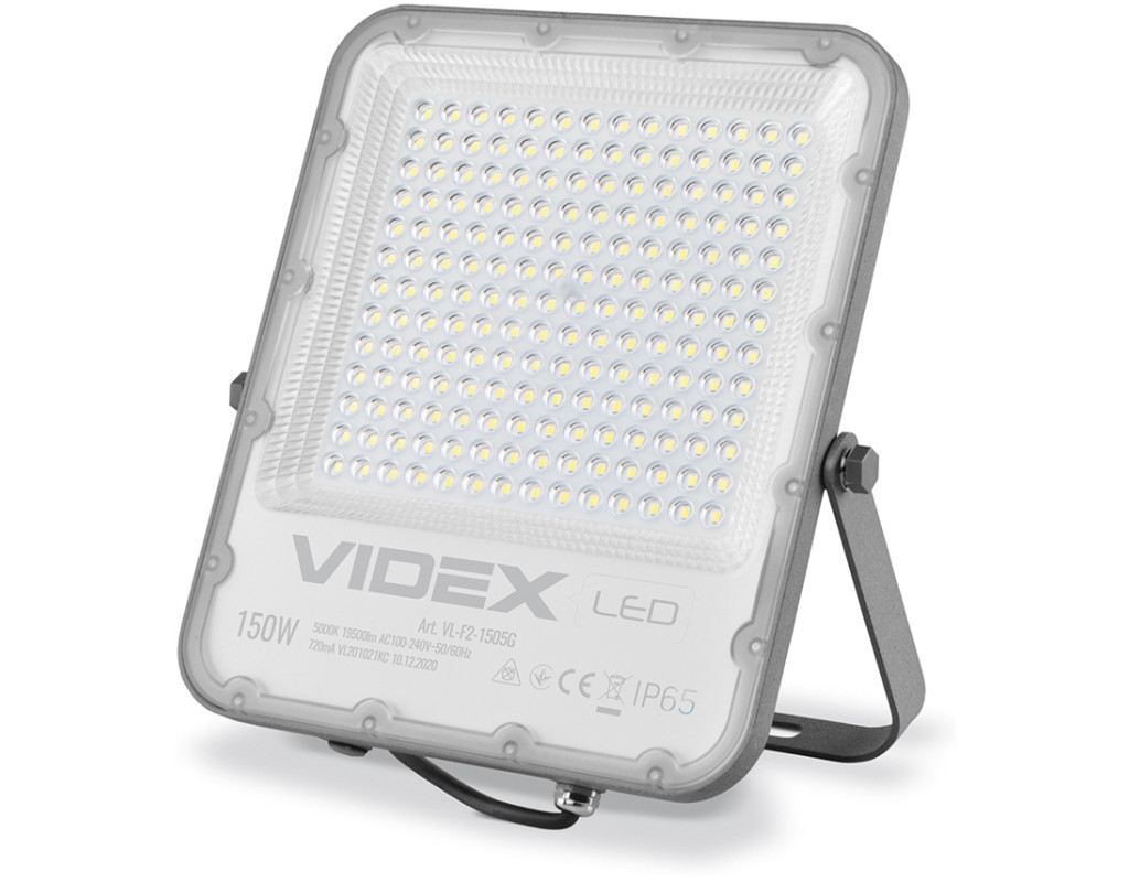 Світлодіодний прожектор VIDEX PREMIUM 150W 5000K Сучасний світлодіодний прожектор VIDEX — високотехнологічне джерело світла. Забезпечує рівний світловий потік і максимальну потужність із першої секунди роботи. Світлодіодний прожектор Videx — екологічна й економна заміна ламп розжарювання й люмінесцентних ламп. Цей прожектор можна використовувати для освітлення й підсвічування рекламних вивісок, конструкцій, автостоянок, гаражів, зовнішнього підсвічування будівель і споруд, спортивних майданчиків, стадіонів, промислових об'єктів, створення світлових ефектів. Його розміри становлять лише 303x280x33 мм. Корпус LED прожектора має сірий колір і чудово протистоїть волозі, дощу, снігопадам та іншим опадам. Клас захисту IP65 і високий захист від ударів IK08. Спеціальне захисне покриття збереже прожектор від подряпин під час монтажу або інших неприємностей у процесі експлуатації. Сила світлового потоку в прожектора VIDEX серії Premium набагато вища, ніж у стандартного – 130 Лм/В, а сумарний потік прожектора становить 19500 Лм. Дає змогу заощаджувати до 90% енергії, має тривалий термін експлуатації та високу стійкість до навантажень під час вмикання і вимикання (100000). Ресурс роботи — 50 000 годин. Наявність повноцінного драйвера. Не містить шкідливих речовин. |