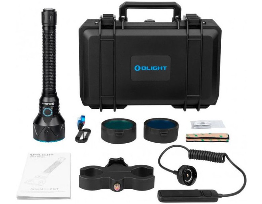 | Ліхтар Javelot Pro 2 - вдосконалена версія попередника Javelot Pro. Головна особливість даної моделі - "закілометрова" дальність світлового променя, завдяки чому модель буде актуальною в пошуковій сфері. Максимальна яскравість ліхтаря становить 2500 lm, є 4 режими роботи. Роботоздатність моделі забезпечується монолітним кастомізованим акумуляторним блоком із двох елементів 21700 загальною ємністю 10000 mA/h. Підзарядка ліхтаря здійснюється за допомогою магнітного конектора. Одним з головних завдань Olight Warrior X 3 є можливість взаємодії зі зброєю. Дана модель витримує віддачу при пострілі з гладкоствольних рушниць 12 калібру, а також нарізних гвинтівок та карабінів калібрами до .300 Win Mag. Модифікація Kit включає додаткові елементи: |