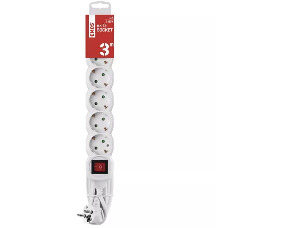 Подовжувач P1623R від чешського виробника EMOS, довжиною 3 м з вимикачем на 250 В ~ для розширення джерела живлення в місцях, недоступних для розетки. Корпус виготовлений з негорючого пластика. При перевантаженні немає загоряння. Також є заглушки для забезпечення захисту від дітей.Має потовщений перетин кабелю, розрахований на підключення джерел з підвищеним класом енергоспоживання Найбільш важливі параметри