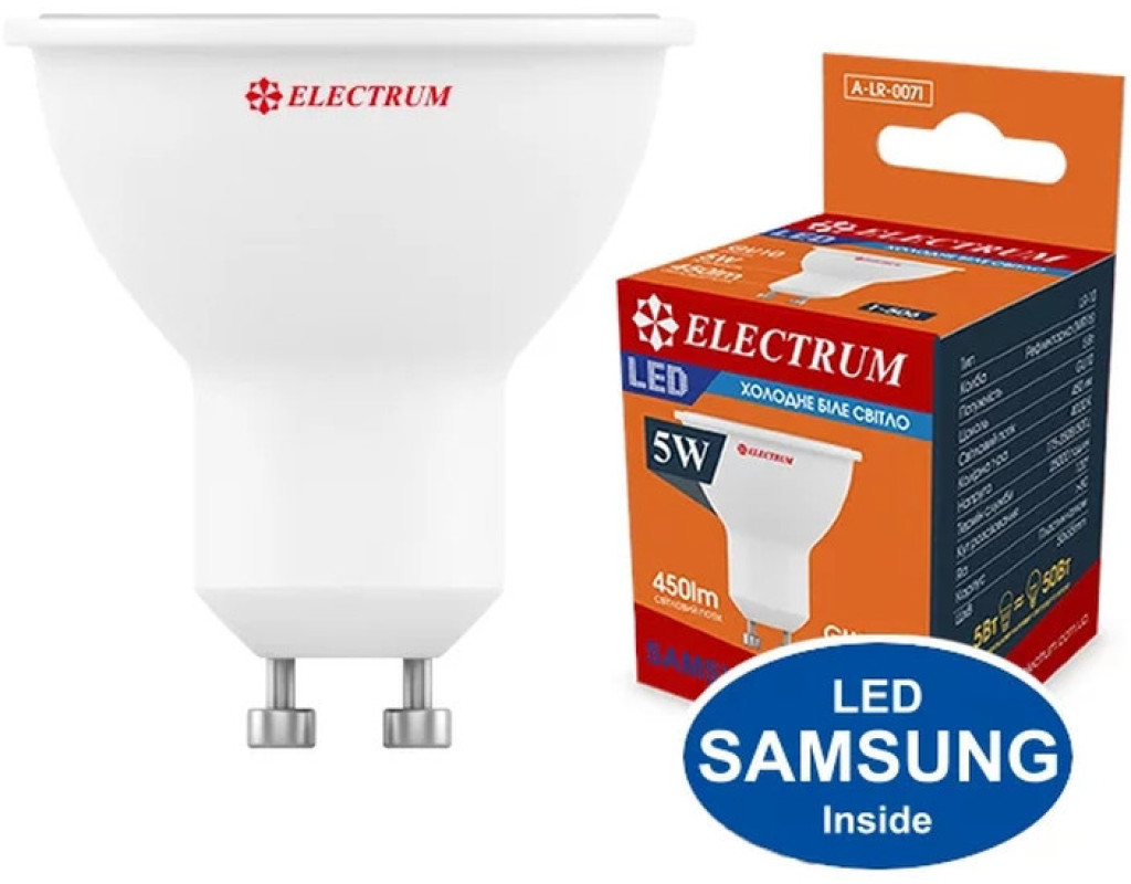 Світлодіодна лампа A-LR-0071 LR-10 Electrum має високі технічні параметри завдяки потужним діодам, що випромінюють світло, максимально наближене до природного, і не потребує додаткових пристроїв при підключенні. Як блок живлення в лампі LR-10 вбудований драйвер, який перетворює змінний струм на постійний, забезпечуючи безперебійну роботу при різких перепадах напруги в діапазоні 175-250 В, а також дає рівне світло з колірною температурою 4000K без мерехтіння та відблисків. Основною перевагою LED-лампи A-LR-0071 Electrum потужністю 5 Вт є висока світловіддача, тривалий термін служби 25000 годин та економія електроенергії до 90% порівняно з аналоговими лампами. Світловий потік 425 Lm і розсіяний м'який кут 60° забезпечують зоровий комфорт. Рефлекторна лампа з цоколем GU10 використовується в точкових світильниках для освітлення робочих місць та для підсвічування елементів у житлових та офісних приміщеннях. Бренд Electrum надає надійний товар, який відповідає європейським стандартам якості з необхідними споживчими характеристиками. |