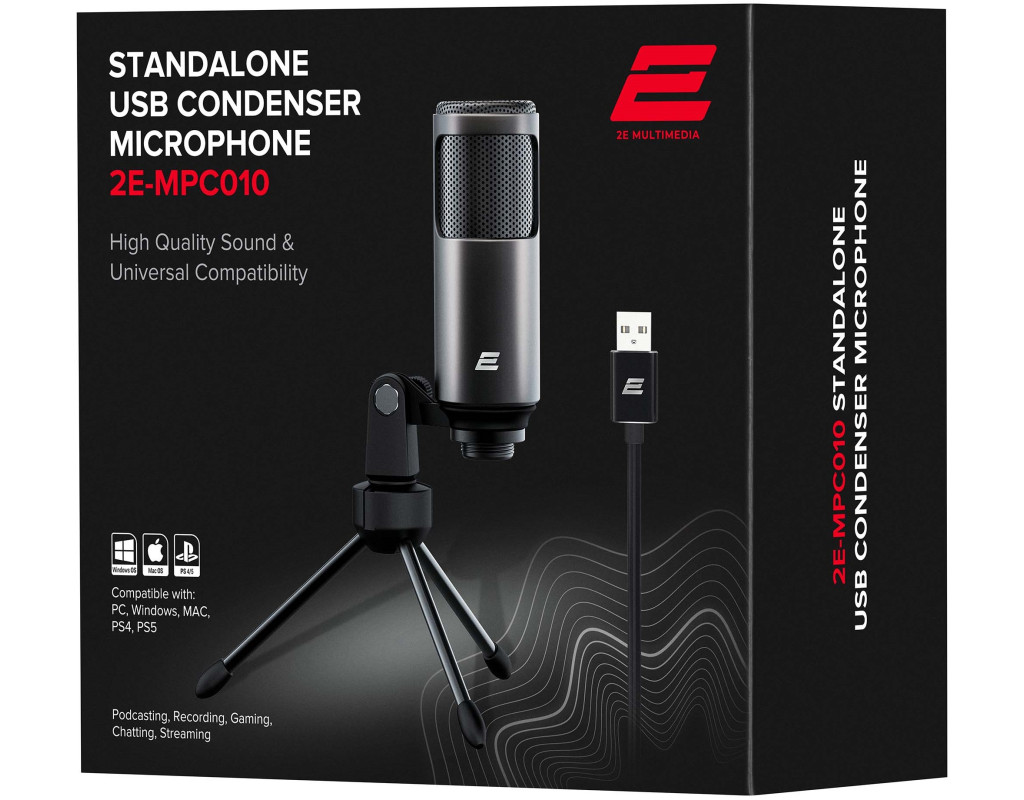 | Мікрофон 2Е MPC010 - чудовий вибір для запису голосу, музики або інших звуків завдяки кардіоїдній спрямованості, високій чутливості, широкому частотному діапазону і легкому підключенню через USB.