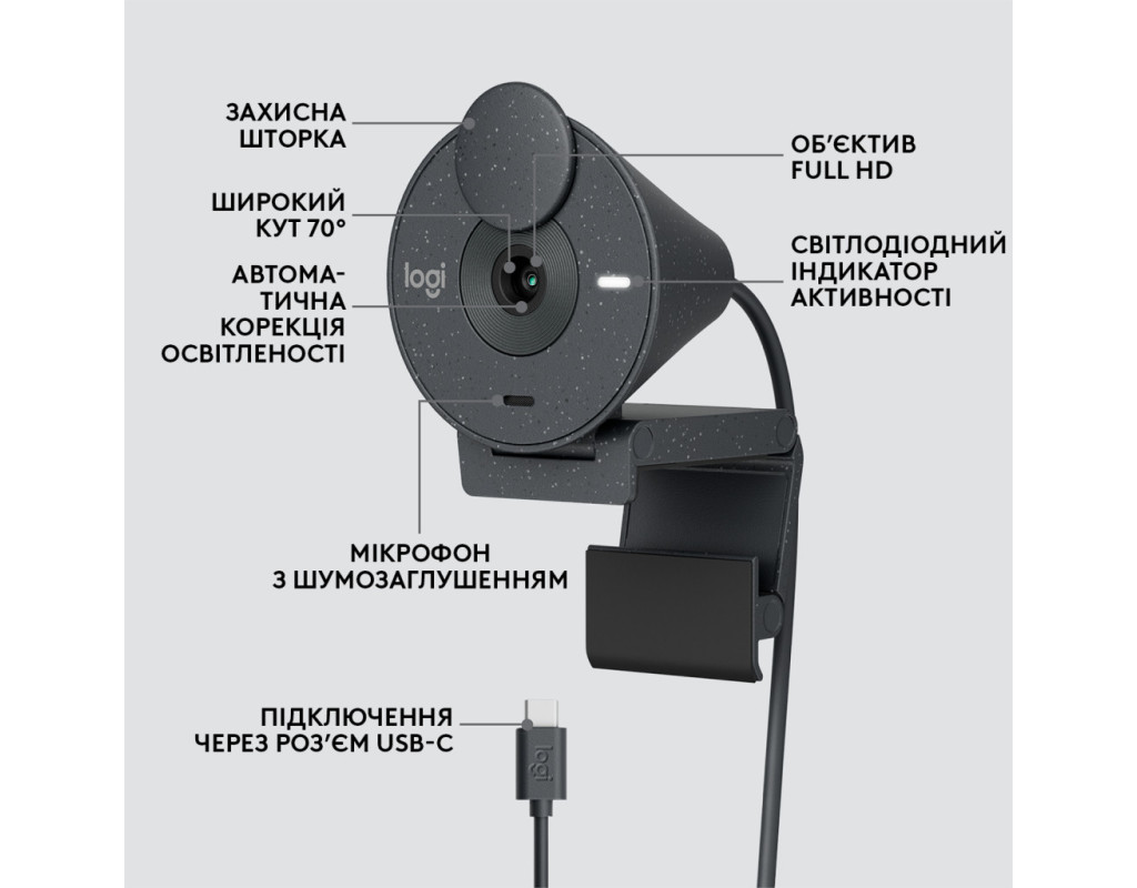 | Відеозустріч необхідна Brio 305 - це проста у використанні веб-камера з роздільною здатністю 1080p, створена на основі лідера ринку веб-камер. На основі незалежних даних про продажі зовнішніх веб-камер в одиницях (серпень 2021 р. - липень 2022 р.), агрегованих для таких основних ринків: Каліфорнія, Китай, Франція, Німеччина, Японія, Південно-Східна Америка, Великобританія, США. Завдяки сертифікації для провідних платформ для нарад ви можете з упевненістю розгортати Brio 305 на робочих станціях і співробітниках WFH. Мінімум 48 % складається з переробленого пластику. Зроблено для бізнесуBrio 305 сумісний з більшістю платформ для відеоконференцій і сертифікований для використання з Microsoft Teams , Zoom і Google Meet . Розблокуйте найкращі зустрічіСпростіть зустрічі з Brio 305, веб-камерою USB-C, яка допомагає всім виглядати і звучати чітко. Роздільна здатність 1080p забезпечує чітке зображення, а автоматична корекція освітленості RightLight 2 компенсує погані умови освітлення, створюючи природну присутність на зустрічі. Максимальна продуктивністьПідтримуйте гібридну робочу силу, налаштовуйте пристрої відеоспівпраці Logitech в одному місці та розгортайте останні оновлення мікропрограм і програмного забезпечення за допомогою Logitech Sync. Контролюйте приміщення, пристрої та периферійні пристрої з будь-якого місця і вирішуйте проблеми до того, як вони вплинуть на збори. Прагнення до сталого розвиткуBrio 305 спеціально розроблений для зниження впливу вуглецю. Він містить щонайменше 48% переробленого пластику.462% для графіту, 48% для рожевого і не зовсім білого. Виключаючи електронні (EE) компоненти, кабелі та упаковку.в прагненні підтримати більш справедливий і сприятливий для клімату світ - ми вирішили прийняти плямистий зовнішній вигляд, який виникає через мінливість переробленого пластику (PCR). |