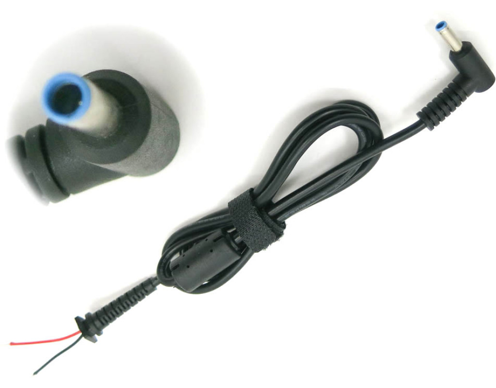 DC кабель (4.5*3.0+Pin) Blue для HP (45W, 65W, 90W) 2 - дроти! Від блока живлення до ноутбука. Кабель із феритовим фільтром і застібкою