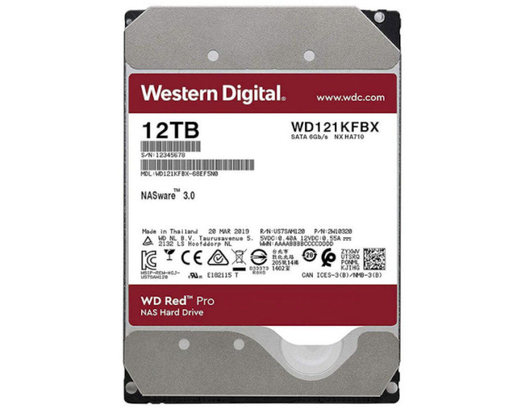 12 TB, 7200 об/хв, 256 MB, SATA III, 3.5", WD Red Pro, 240 Мбіт/сек, 5.7 Вт, 29 дБ
