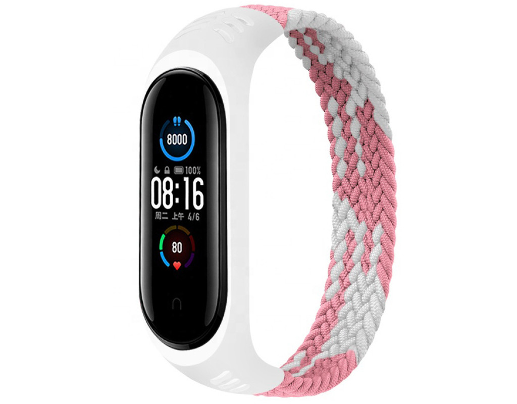 Ремінець до фітнес браслета BeCover Elastic Nylon Style для Xiaomi Mi Smart Band 5/6 (Size L) Pink-White (706164)