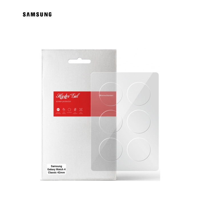 Призначення - для смарт годинника, Вид покриття - захисний, гідрогелева, Сумісність з моделями - Samsung Galaxy Watch 4 Classic 42mm, Кількість в упаковці - 6 шт