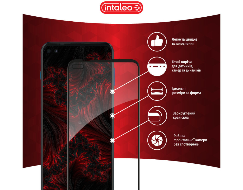 • У склі передбачені як наскрізні вирізи, так і не наскрізні прозорі частини, які ідеально збігаються з елементами дизайну пристрою: з логотипом, фронтальною камерою, динаміком, датчиком світла тощо.