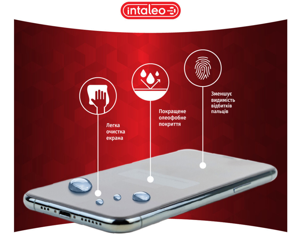 • Олеофобне покриття. Має водовідштовхувальні, жиростійкі й антикорозійні властивості. Зменшує видимість відбитків пальців і дає змогу легко чистити екран.