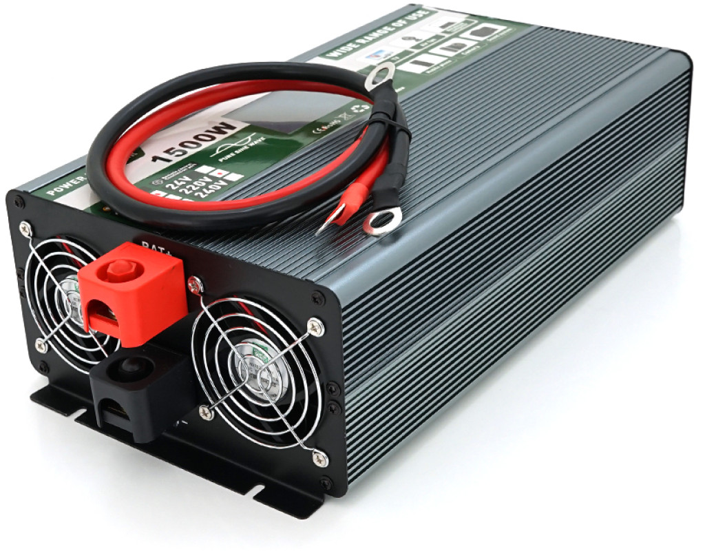 | Інвертор напруги Demuda DMDPSW-1500W, 12V / 220V, 1500W з правильною синусоїдою, 2 універсальні розетки, 2 USB, Rj 45, клемні дроти, Q6 |