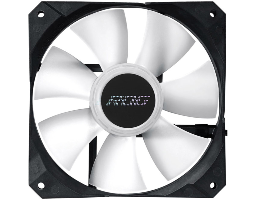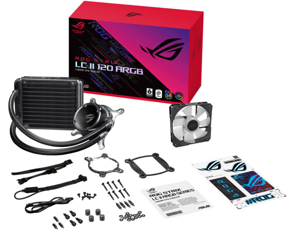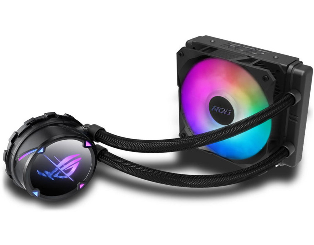 Комплексна система водяного охолодження процесора з 120-міліметровим вентилятором ROG на радіаторі з підтримкою RGB-підсвічування Aura Sync. |