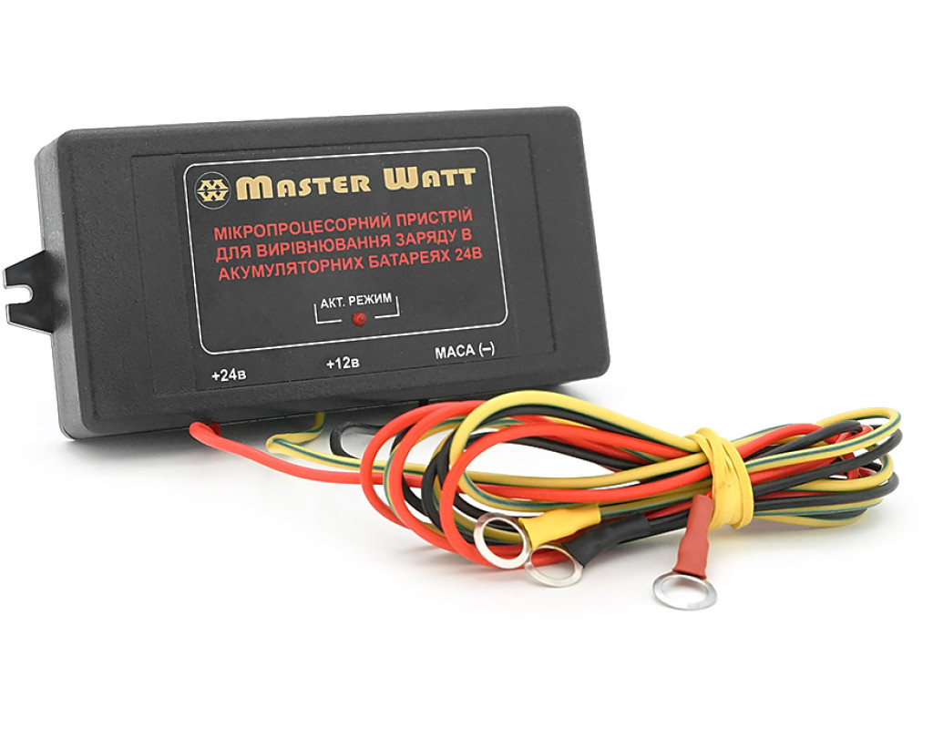 | Мікропроцесорний вирівнювальний пристрій (МВП) призначений для для вирівнювання (балансування) напруги під час заряджання 2-х послідовно ввімкнених 12-вольтових акумуляторних батарей (АКБ) у 24-вольтову мережу і недопущення перевищення напруги на одній з АКБ. АКБ навіть однієї партії мають розкиди струмів витоку, зарядно-розрядних характеристик та ін., які протягом часу зростають. У результаті виникає перекіс напруги між АКБ, і одна АКБ постійно працює в режимі недозаряду, а інша - перезарядження, що призводить до скорочення терміну служби обох батарей. Робота пристрою полягає в такому: щойно з`являється різниця потенціалів між двома АКБ. потенціалів між двома АКБ, МВУ починає перекачувати заряд з однієї АКБ в іншу, поки не встановляться однакові потенціали на обох АКБ. У результаті підвищується довговічність роботи АКБ, особливо якщо батареї різного віку, заводів виробників, ємностей тощо. Основні технічні характеристики: Напруга ввімкнення 24 В Струм розряд / заряд, не менше 1.2А Різницевий струм, не менше 2. 4 А Різниця напруг для ввімкнення 0.2В Габаритні розміри 105*65*25мм Маса 100г Гарантія 12 місяців Для досягнення максимальної ефективності рекомендується не періодичне використання цього пристрою, а встановлення на транспортний засіб 'назавжди'. |