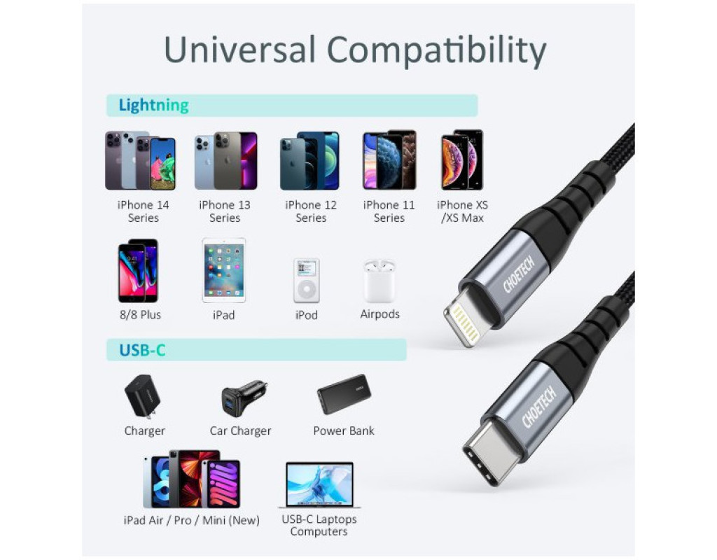 Дата кабель USB-C to Lightning 1.2m MFI Choetech (IP0039-BK)