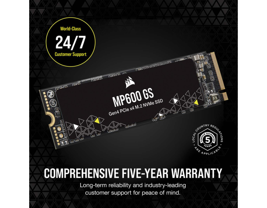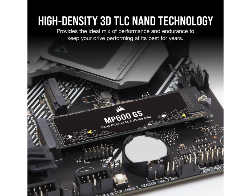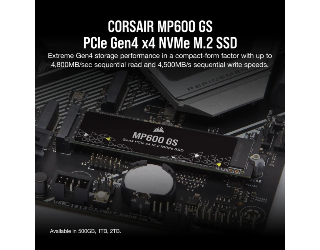 Corsair MP600 GS – внутрішній SSD накопичувач, який призначений для користувачів, які бажають перевести свою систему на швидкісне сховище даних. Оснащений SSD-контролером початкового рівня Phison PS5021-E21T, побудований на базі пам'яті 3D TLC.