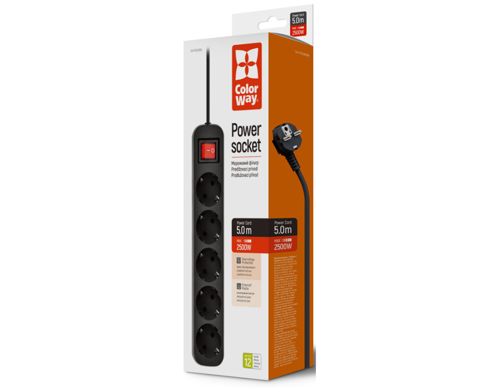 Мережевий фільтр ColorWay призначений для підключення широкого спектру побутової та електронної техніки. Пристрій з універсальними розетками типу "євро" із заземленням, виконаний в ударостійкому пластиковому корпусі, має вбудований захист від перевантажень, а також оснащений отвором для кріплення на стіні. Особливості: