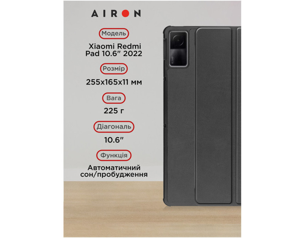 Тип - обкладинка, Сумісність з моделями - Xiaomi Redmi Pad 2022, діагональ - 10.6, Спосіб кріплення - обкладинка, спосіб закриття - магніт, Матеріал - штучна шкіра, чорний