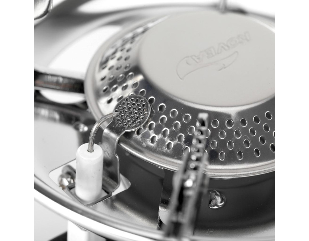 Пальник Kovea Scout TKB-8911-1 (8809000501034) - це велика нестерпний пальник, яка ідеально підійде для любителів Кемпінгові відпочинку, так як успішно комбінує в собі показники продуктивності і ціни. Широкі розкладаються лапки пальника забезпечать більшу робочу площу для посуду з широким дном. Спеціальний тепловідбиваючий круглий екран по всьому периметру пальника ефективно відбиває тепло, тим самим підвищуючи продуктивність пальника, дозволяючи воді швидше закипати. Помірний витрата палива (всього 110 грам на годину) дозволить заощадити на кількості використовуваного газу. Особливістю пальника є наявність спеціальної сіточки в голівці пальника, яка захищає пальник від задування поривами вітру: сітка розжарюється до червона в полум'я палаючого газу, і якщо різкий порив вітру здує полум'я пальника, сіточка миттєво запалить газ знову. Пальник Kovea Scout TKB-8911-1 використовується з газовими балонами різьбового стандарту (epi-gas), але при наявності спеціального перехідника зі шлангом, який купується окремо KA-0103 Cobra Adapter, можлива установка і на цангові балони. |