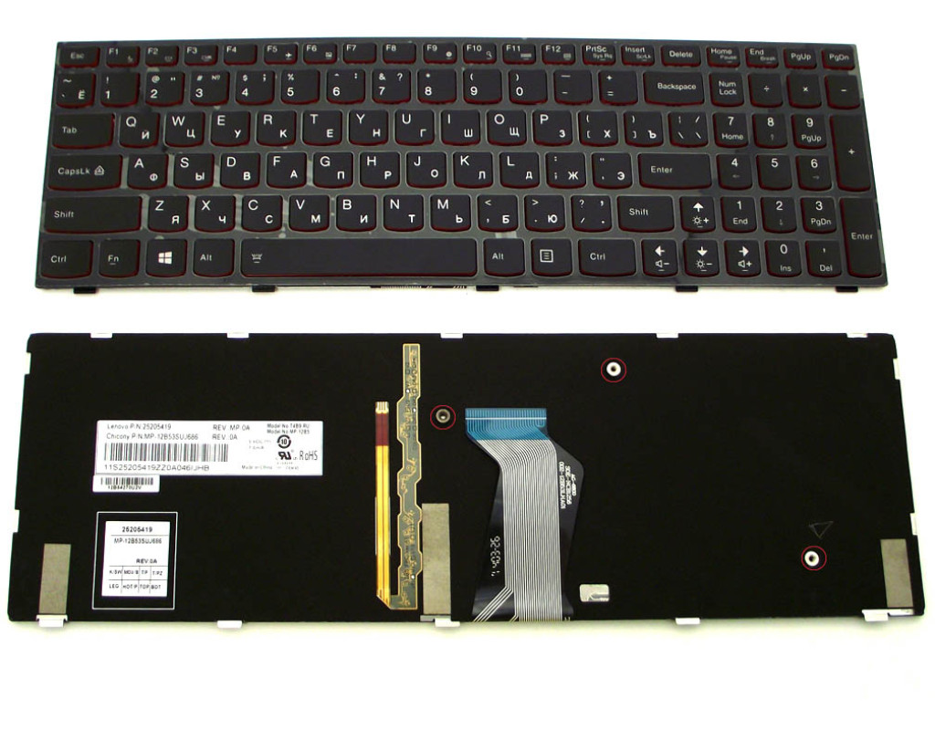 Сумісні моделі ноутбуків: Сумісні партномери: Клавіатура для ноутбука призначена для ручного введення інформації в ноутбук, а також для управління. Клавіатури для ноутбуків бувають звичайні, з підсвічуванням і вологозахищені. Найчастіше клавіатура ноутбука може вийти з ладу шляхом потрапляння різного роду рідин на неї. У цьому випадку ремонт клавіатури ноутбука може бути недоцільний. Однією з проблем при підборі клавіатури ноутбука може бути її несумісність, так як виробники навмисне розробляють для кожної моделі унікальні за роз'ємами і формою клавіатури. У нашому магазині представлений величезний асортимент клавіатур для ноутбуків