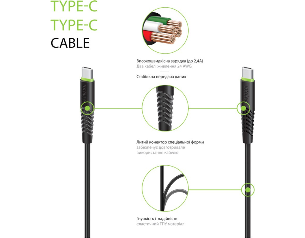 | Кабель синхронізації Intaleo CBFLEXTT0 Type-C to Type-C 60W 0.2 м (чорний). Має чудову передачу даних, литий конектор, який забезпечує надійну фіксацію всього дроту, в місцях, які особливо схильні до залому. |