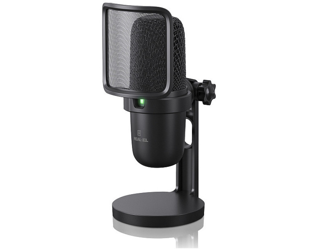 Якісний мікрофон — невід'ємна складова гарного підкасту та озвучування відео. Професійний аудіо мікрофон REAL-EL MC-700 призначений для потокової передачі, запису та голосового чату. Завдяки вбудованій звуковій карті та наявності POP фільтру MC-700 відрізняє висока якість запису звуку. Кардіоїдна спрямованість забезпечує відсутність сторонніх звуків та шумів під час запису. Підставка з регулюванням кута нахилу, сенсорна кнопка для відключення запису та світлодіодний індикатор роблять роботу з мікрофоном простою, комфортною та зручною. Також передбачено роз'єм з різьбленням для кріплення мікрофона на стандартну студійну стійку або тримач. Мікрофон REAL-EL MC-700 - це чистий, об'ємний звук та комфортний універсальний форм-фактор.