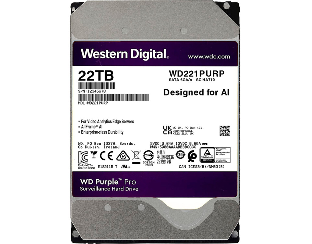 22 TB, 7200 об/хв, 512 MB, SATA III, 3.5", WD Purple, 10 Вт