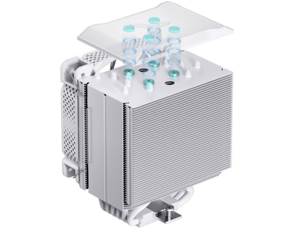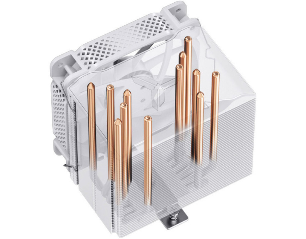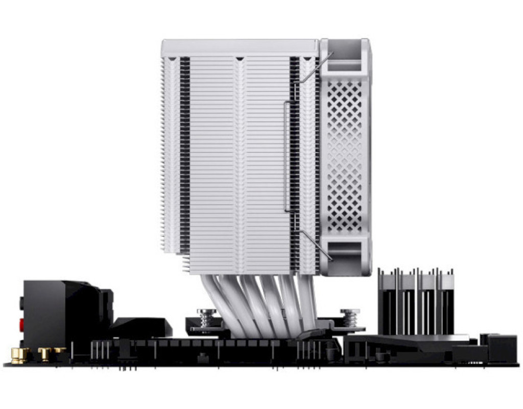 HX6240 — кулер для процесора від виробника Jonsbo. Виріб оснащений алюмінієвим радіатором, який допомагає швидше охолодити процесор. Тепло розсіюється завдяки одному 120-мм вентилятору. Він має широкі лопаті, які здатні захопити велику кількість повітря. За одну хвилину виріб виконує від 700 до 1800 обертів. Максимальний рівень шуму становить 37,6 дБа. Виріб має алюмінієву конструкцію та оснащений контактними пластинами із нікельованої міді, які з'єднується шістьма тепловими трубками діаметром 6 мм, де крайня трубка зміщена для кращої сумісності з модулями оперативної пам'яті. Підключається пристрій за допомогою конектора 4 Pin. Підійде для всіх вказаних сокетів. |