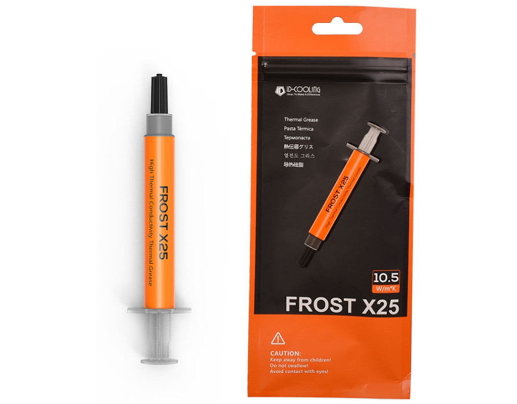 Термопаста ID-Cooling Frost X25 завдяки теплопровідності на рівні значення 10,5 Вт/мК забезпечує високу ефективність розсіювання тепла та охолодження потужних апаратних компонентів. Вона здатна витримувати температуру нагрівання в межах 180 °C і виготовлена з безпечних матеріалів, що не проводять електричний струм. Для зручності нанесення і розподілу термопаста ID-Cooling Frost X25 поставляється в шприці. Також у комплекті передбачені серветка для знежирення поверхні та аплікатор. |