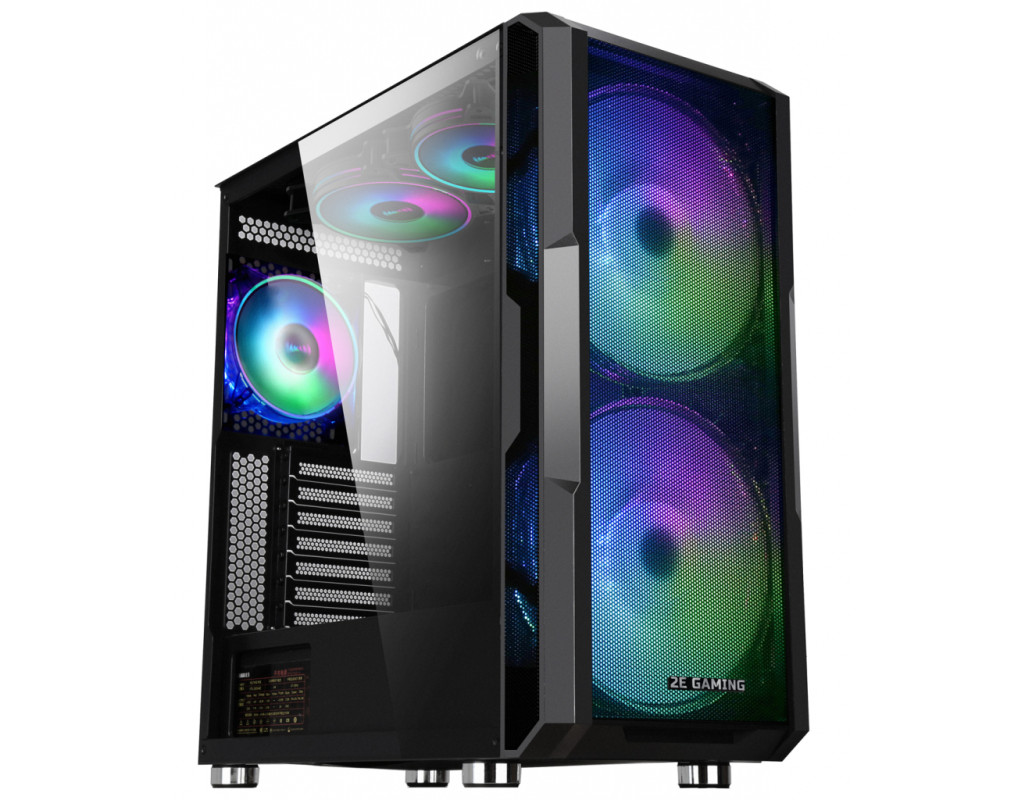 Геймерські, Miditower, ATX, Extended-ATX, Micro - ATX, Mini - ITX, Слотів розширення - 7, Вентилятори - 2 х 200 мм, 3 х 120 мм, Додатково - Bottom 2x12 см, GPU - до 380 мм, CPU - 160 мм, PSU - 165 мм, кулери з підсвічуванням, на передній панелі, на задній панелі, на верхній панелі, 215 x 482 x 458 мм, чорний