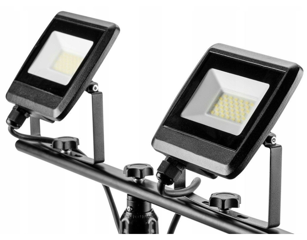 Прожектор Neo Tools, алюміній, 220 В, 50Вт, 8500 люмен, SMD LED, кабель 3 м із вилкою, на штативі 1.8 м, IP65. Рефлектор подвійний на штативі NEO 99-062 SMD 50 Вт використовується для внутрішнього та зовнішнього освітлення. Характеристики - Складається із двох ламп, кожна потужністю 50 Вт.