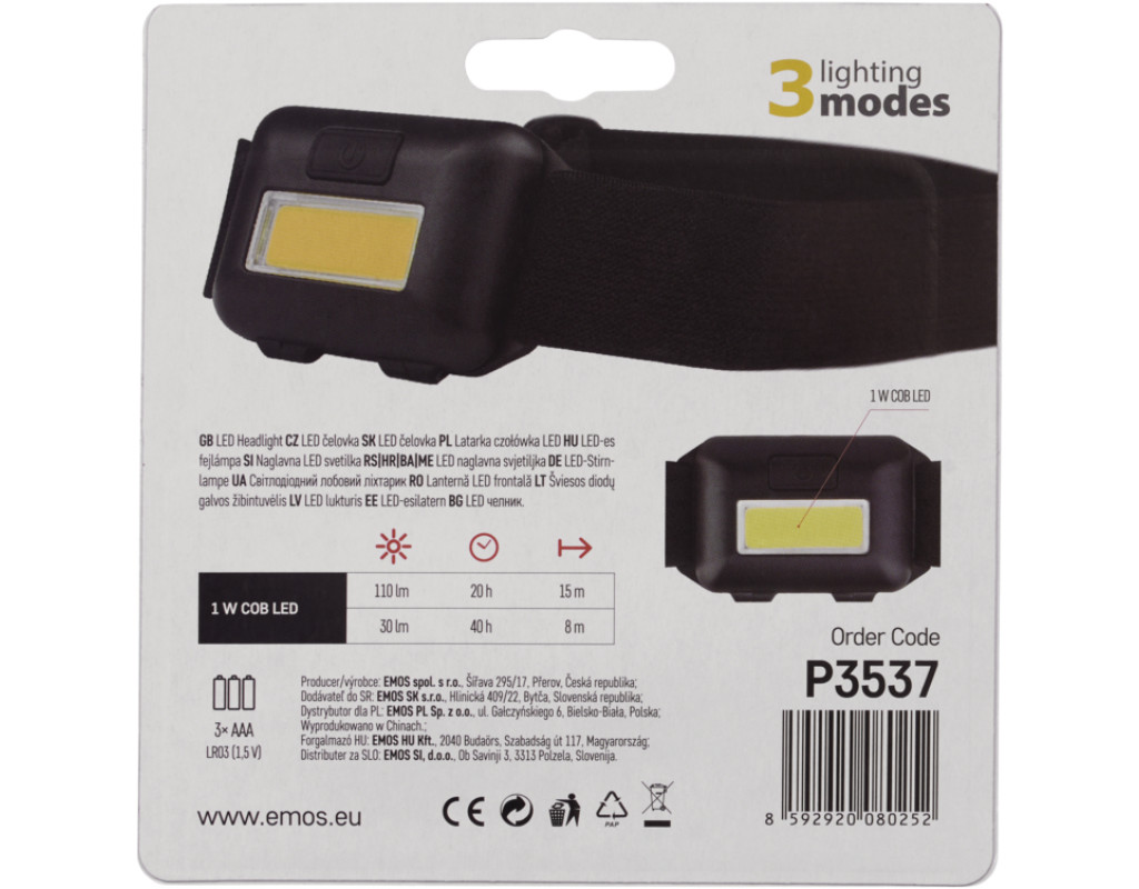| Ліхтар EMOS P3537 — це надійний та ефективний налобний ліхтар від відомого чеського виробника EMOS, який забезпечує високоякісне освітлення в умовах поганої видимості. Розроблений з метою максимального комфорту та тривалого використання, цей ліхтар стане незамінним помічником у походах, кемпінгах, під час ремонту, а також у повсякденному житті. Якість від EMOS. Ліхтар виготовлений з ударостійкого АБС пластику, що робить його стійким до механічних пошкоджень і забезпечує захист від падіння з висоти до 1 м. Завдяки класу захисту IPX4, він витримує бризки води з будь-якого напрямку, що дозволяє використовувати його навіть у дощову погоду. Продумана конструкція. Компактні розміри (60 × 40 × 18 мм) та легка вага (56 г) роблять ліхтар максимально зручним для носіння на голові. Ліхтар оснащений еластичним кріпленням, що забезпечує надійне та комфортне фіксування, тому ви можете зосередитись на своїй діяльності, звільнивши руки для важливих завдань. Потужність освітлення. Ліхтар EMOS P3537 оснащено сучасними світлодіодами COB LED, які забезпечують потужність світлового потоку до 110 люмен. Максимальна дальність освітлення становить 15 метрів, що дає змогу легко орієнтуватись у затемненнях і нічних умовах. Кут променя 110° дозволяє отримати широку площу освітлення, що особливо цінно при нічних прогулянках чи роботах на відкритому повітрі. Режими відповідно до ваших потреб. Цей ліхтар пропонує 4 різні режими роботи: максимальний (COB LED 100%), середній (COB LED 50%), стробоскоп для сигналізації та режим SOS для екстрених ситуацій. Завдяки цьому ви зможете обрати саме той рівень яскравості, який потрібен у конкретний момент, а також збільшити термін роботи, залежно від вибраного режиму. Енергоефективність та довгий термін роботи. EMOS P3537 живиться від трьох батарейок типу AAA (LR03), які забезпечують довготривалу роботу — до 20 годин при максимальній яскравості та до 40 годин при використанні середнього режиму. Низьке енергоспоживання світлодіодів дозволяє зберігати заряд батарейок на довший час. Деталі, які роблять різницю. Практична упаковка у вигляді паперового блістера є ще однією з переваг цього продукту. Із таким ліхтарем у вас завжди буде вірний помічник під рукою, що легко зберігати та транспортувати. Забезпечте собі надійне освітлення завдяки EMOS P3537 та відчуйте переваги високоякісного, яскравого і стабільного світла. Цей ліхтар стане вашим незамінним супутником, куди б ви не вирушили. EMOS — це гарантія якості та точність світла, яке завжди поруч. |