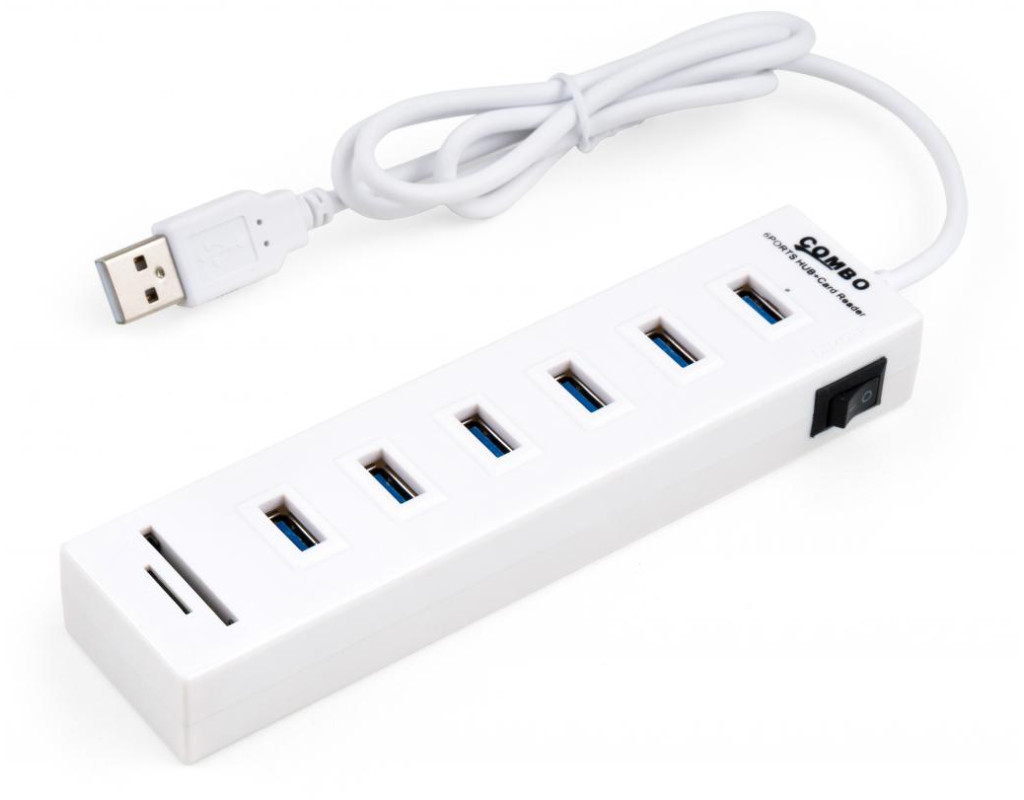 Тип - зовнішній, Інтерфейс підключення - USB 2.0, Вихідні роз'єми - 6 x USB 2.0, microSD, SD, вимикач, кабель 0.8 м