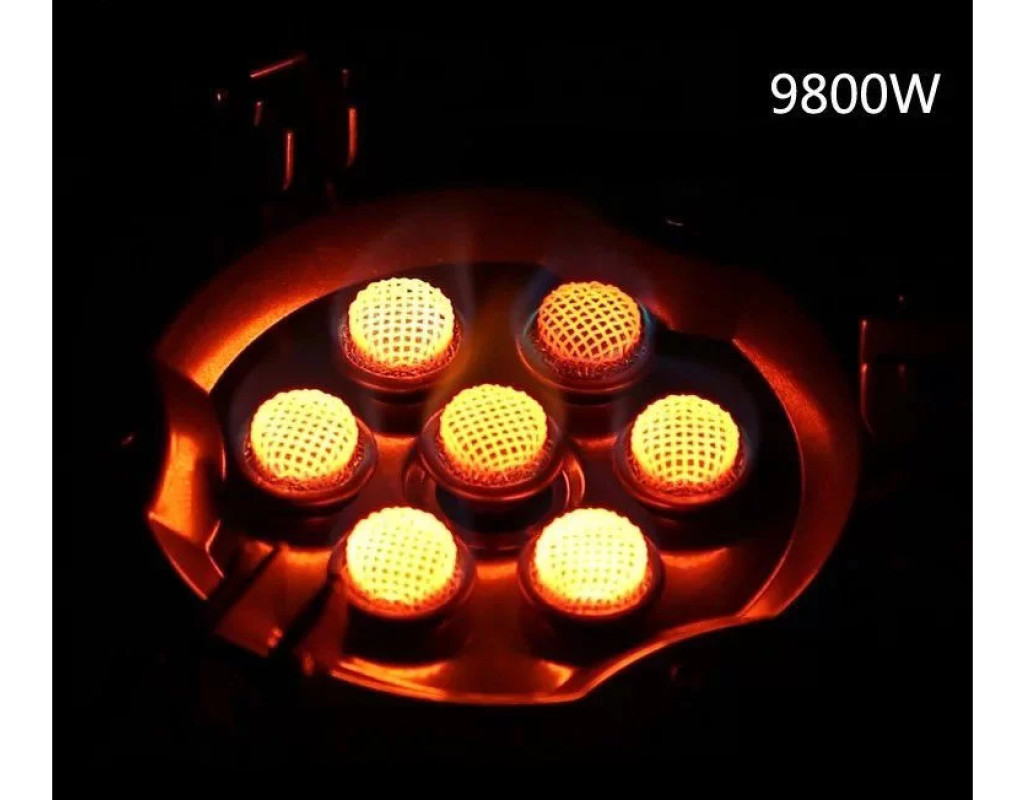 | Якщо у планах активний відпочинок великою компанією або сімейний пікнік, пальник BRS-71 стане ефективним помічником у кулінарних експериментах на свіжому повітрі. Потужність моделі дорівнює 10500 Вт, що в кілька разів перевищує можливості звичайних пальників, а функція регулювання інтенсивності горіння дозволяє коригувати потужність, щоб швидко просмажити м'ясо та овочі або навпаки – поставити малий вогонь для повільного гасіння. Залежно від обраної потужності, пальник може генерувати високе або низьке полум'я, причому у другому випадку воно трансформується в інфрачервоне випромінювання, яке сприяє рівномірному нагріванню посуду та перешкоджає пригоранню продуктів харчування. BRS-71 працює на різному паливі: пропані, бутані, зрідженому газі. Витрата палива становить близько 756 г/год. Газовий балон приєднується до шлангу з різьбовим з'єднанням, яке закривається за допомогою заглушки. Завдяки цьому дрібний пил не забивається в різьблення під час транспортування, запобігаючи ризику випадкового займання при наступному під'єднанні картриджа. Довжина шлангу досягає 650 міліметрів. Пальник BRS-71 має міцну металеву конструкцію, яка витримує посуд вагою до 80 кілограмів. В аксесуарі поєднуються деталі з нержавіючої сталі, міді та алюмінієвого сплаву. Вони характеризуються стійкістю до вологи, високих температур і механічного впливу, тому модель підходить для використання в різних погодних умовах і потребує мінімального догляду. За зручність експлуатації відповідають три складні стійки для посуду та три металеві ніжки. Зубчаста кромка стійок сприяє надійному утриманню казанка на поверхні без ковзання, а ребристі ніжки підвищують стійкість конструкції незалежно від рельєфу поверхні. Після встановлення висота конструкції дорівнює 125 міліметрів, а діаметр - 265 міліметрів, тому на пальник зручно встановлюється широкий посуд підвищеного об'єму. Газовий пальник BRS-71 можна переносити в рюкзаку або фірмовому чохлі-сумці, який входить в комплект. Аксесуар виготовлений із полімеру EVA та оснащений блискавкою, оберігаючи металеву конструкцію від засмічення та контакту з агресивними середовищами під час зберігання. Дизайн чохла доповнює зручна ручка для транспортування.Характеристики: