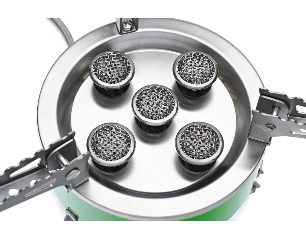 Призначення – туризм, активний відпочинок. Має значну потужність 7 кіловат. Виготовлена з міцної нержавіючої сталі та алюмінієвого сплаву. П'ять невеликих конфорок для рівномірного розподілу тепла. Регульований клапан для легкого керування потужністю полум'я. Як паливо тут використовується газ бутан. Високоефективна модель допоможе закип'ятити один літр води за кілька хвилин. Три неслизькі складні опори створюють стійку платформу для приготування їжі. Три складні ніжки з гумовими накладками, що не ковзають. Поставляється у футлярі для зручного транспортування. Компактні розміри, зручна конструкція.