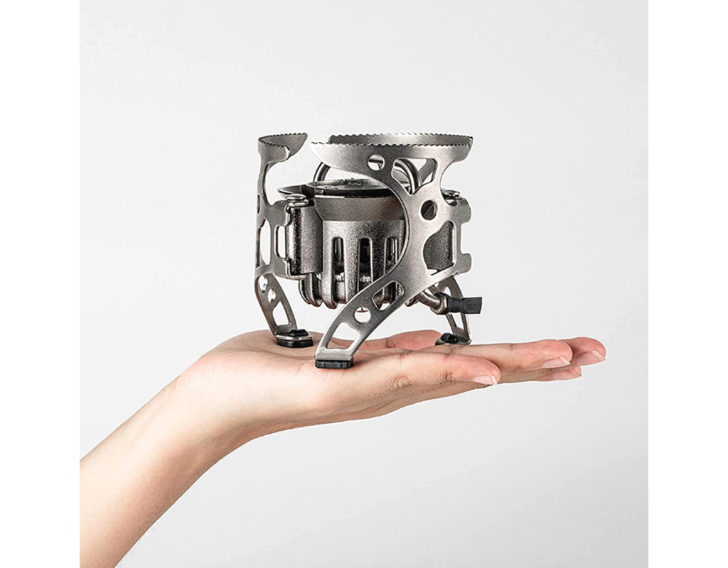| Пальник BRS-8A - універсальний помічник у приготуванні їжі та гарячих напоїв під час пікніка, кемпінгу та екстремальних подорожей далеко від благ цивілізації. Модель відноситься до пальників мультипаливного типу, оскільки може працювати від різних видів палива, включаючи балонний газ, бензин та дизель. Потужність пальника становить 4500 Вт, що дозволяє довести до кипіння 1 літр води протягом 3 хвилин. Витрата палива дорівнює близько 208 г/год. У корпусі пальника поєднується ряд жароміцних та нержавіючих металів: сталь та мідь. Матеріали несприйнятливі до впливів кислот, солі та інших реагентів, а також відрізняються стійкістю до пошкоджень та деформацій. Це дозволяє конструкції витримувати високі навантаження до 80 кг. У розкладеному положенні діаметр BRS-8A досягає 172 міліметри, тому на пальник можна вільно встановити казанок великого розміру та об'єму. Краї трьох складних підставок під посуд усіяні дрібними зубчиками. Вони дозволяють зменшити ковзання металевого посуду на поверхні пальника, підвищуючи безпеку експлуатації. Стійкість конструкції забезпечується за рахунок трьох ніжок із щільними, ковзними накладками на кінцях, що дозволяє встановлювати модель на гладку поверхню столу. У складеному вигляді розміри моделі становлять 93 х 92 міліметрів. У комплект з пальником також входить алюмінієвий насос, силумінова помпа, паливний балон на 450 мілілітрів, шланг довжиною близько 270 міліметрів. Всі предмети компактно складаються у фірмову валізу яскравого блакитного кольору, усередині якої для кожної деталі відведено своє місце. Це не тільки дозволяє зручно переносити набір, але також запобігає появі подряпин на металевій поверхні аксесуарів, що часто відбувається у разі тертя предметів один про одного при транспортуванні. Вага BRS-8A складає 501 грам.Характеристики: