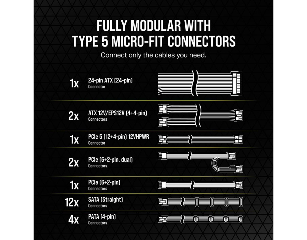 | Блок живлення Corsair 750W RM750x Shift PCIE5 (CP-9020251-EU) - це сучасне рішення для інтеграції в потужні комп'ютерні системи, яке поєднує в собі бездоганну продуктивність та зручність використання. Цей блок живлення, дотримуючись стандарту ATX 12V v3.0, пропонує високий рівень надійності, що забезпечується більш ніж достатньою потужністю в 750 Вт і сертифікацією 80 PLUS Gold. Це гарантує ефективність енергопостачання до 90%, мінімізуючи втрати на тепло і підтримуючи низькі експлуатаційні витрати. Особливістю Corsair RM750x Shift є його повністю модульна конструкція, яка робить підключення кабелів максимально комфортним, дозволяючи вам підбирати тільки ті кабелі, які потрібні. Інноваційний інтерфейс бічного кабелю з запатентованою боковою панеллю дозволяє зручно і швидко здійснити монтаж, покращуючи організацію простору всередині корпусу. Це, в свою чергу, не тільки полегшує зовнішній вигляд системи, але й покращує циркуляцію повітря, що особливо важливо для стабільної роботи в потужних ПК-конфігураціях. Важливою перевагою цього блока живлення є його готовність до викликів сучасного геймінгу. У комплекті є спеціалізовані кабелі GPU PCIe 5.0, що значно полегшують інтеграцію новітніх відеокарт, зокрема серії NVIDIA GeForce RTX 40, завдяки чому ви можете насолоджуватися плавністю графіки і швидкістю ігор на найвищих настройках. Активний модуль PFC блоку живлення знижує споживання електроенергії і зменшує рівень шуму, а 140-міліметровий вентилятор із низьким коефіцієнтом тертя і з підтримкою режиму Zero RPM забезпечує охолодження практично без шуму під середнім та низьким навантаженням. Це дозволяє ПК залишатися тихим навіть у найінтенсивніших моментах, підтримуючи комфортну роботу чи гру. Надійність Corsair гарантується використанням промислових японських електролітичних конденсаторів, які витримують температури до 105°C. Це забезпечує довговічність і стабільність енергопостачання, захищаючи всі компоненти системи навіть під найсуворішими умовами роботи. Блок живлення також має великий набір роз'ємів, які включають 20+4 pin для підключення материнської плати, 2x4+4pin для процесора, а також 4 роз'єми додаткового живлення для відеокарт і 12 SATА для накопичувачів. Це робить Corsair RM750x Shift чудовим вибором для тих, хто шукає гнучкість і можливість зміни конфігурації системи у майбутньому. З Corsair 750W RM750x Shift PCIE5 ви отримуєте не лише потужний і надійний блок живлення, а й рішення, яке відповідає найвищим стандартам сучасності, забезпечуючи стабільну роботу вашого комп'ютера на довгі роки. Це ідеальний блок живлення для тих, хто прагне створити досконалу і надійну систему з максимальним комфортом при збірці та експлуатації. |