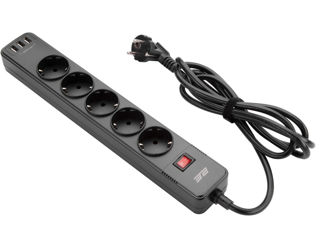 Мережевий фільтр 2E SP515 на 5 розеток з додатковими трьома роз'ємами USB-A захищає під’єднані пристрої від раптових сплесків напруги або перенавантажень. Ергономічний дизайн, стриманий білий та чорний колір ідеально пасуватиме майже кожному інтер’єру. Функцію захисту у мережевому фільтрі виконує панель із швидкоплавним варистором, який у випадку стрибка напруги або перенавантаження плавиться і роз'єднує ланцюг живлення. Фільтр оснащений автоматичним вимикачем, який у разі виникнення замикання або скачку напруги, автоматично від'єднує пристрої. Вимикач працює майже безшумно. Фільтр оснащений двома LED-індикаторами: індикатор заземлення і стабільності мережі. Пристрій має захист від дітей у вигляді захисних шторок. Розетки на фільтрі розташовані під кутом 45 градусів, тому вилки пристроїв не будуть заважати одна одній. Фільтр виконаний із вогнетривкого PC-пластику, який витримує високі температури запобігаючи займанню і як наслідок, перешкоджає виникненню пожежі. Кабель в мережевому фільтрі зроблений з індивідуальною ізоляцією кожної жили, а саме H05VV-F, трьох-жильний із перерізом 1.5 мм. Матеріал провідника – 100% мідь. Такі характеристики забезпечують максимальне навантаження на пристрій – 3680 Вт. Три додаткових роз'єми USB-A допоможуть швидко та зручно зарядити Ваші девайси без використання додаткових адаптерів.