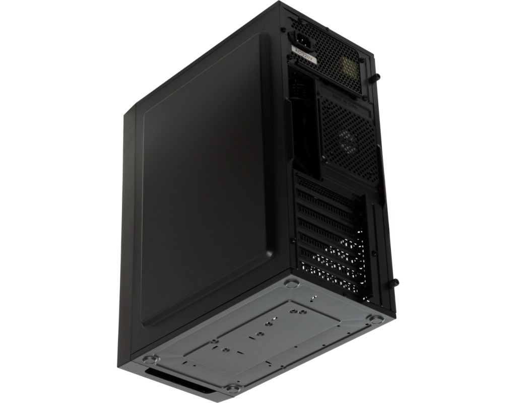 У верхній частині передньої панелі конструкції розташовані виходи USB і аудіо, а ще клавіша аварійного перезавантаження і велика кнопка відключення/подачі живлення. Є роз'єми 24 pin, PATA і SATA. Для HDD/SSD передбачено по одному відсіку на 2.5 та 3.5 дюйма. Всі елементи корпусу виготовлені з пластику і листової сталі товщиною 0.45 мм, захищеної від корозії сучасними високотехнологічними методами обробки. На донній панелі розташовуються опорні циліндричні пристрої, що забезпечують стабільність при постановці виробу в робоче вертикальне положення на слизьку поверхню. |