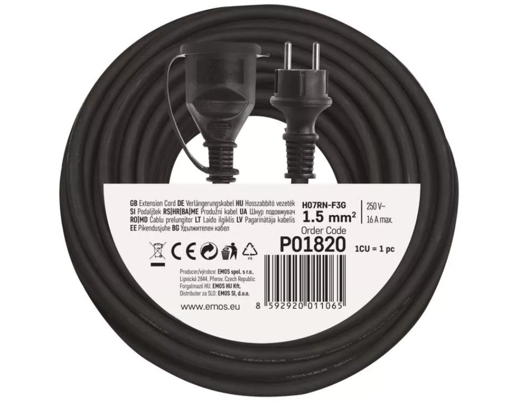 Подовжувач P01820 від чеського виробника EMOS. Компактна переносна розетка із заземленням дає змогу швидко під'єднати прилад для використання на відстані. Розетка подовжувача рейтинг захисту IP44. Параметри:
