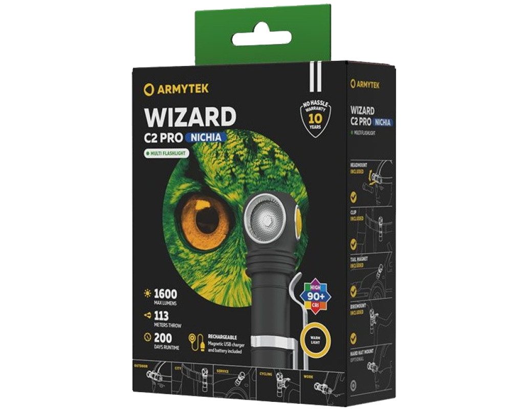 | Ліхтар Armytek Wizard C2 Pro Nichia Marnet USB Warm (F06801W) - це справжня знахідка для професіоналів та аматорів, які цінують надійність та високу якість освітлення. Цей налобний ліхтар з LED-джерелом світла встиг зарекомендувати себе у багатьох сферах - від фотосесій і відеозйомок до туризму та активного відпочинку. Потужність та якість освітлення Armytek Wizard C2 Pro є видатними завдяки використанню світлодіода Nichia 144ar. З колірною температурою 4500К ліхтар забезпечує яскравість у 1600 люмен, що максимально наближує освітлення до природного, дозволяючи чітко диференціювати кольори. З такою системою освітлення ви отримаєте підсвічування на відстані до 113 метрів, що стане незамінним під час виконання тонких робіт або в умовах поганого освітлення. Для зручності користування, ліхтар оснащений шістьма стандартними режимами роботи, які можна легко змінювати, вибираючи між різними режимами яскравості. Любителям професійних налаштувань доступне просунуте керування з 11 режимами, що дозволяє налаштувати пристрій під будь-які потреби. Енергія для роботи Armytek Wizard C2 Pro постачається від літієвого акумулятора типу 18650, який забезпечує стабільну роботу до шести з половиною місяців на мінімальній яскравості. Завдяки магнітному micro USB-кабелю, зарядка є швидкою та зручною, займаючи лише 3 години 40 хвилин. Захист та міцність ліхтаря також на вищому рівні. Його корпус виготовлено з авіаційного алюмінію з матовим анодованим покриттям, що забезпечує ударостійкість, вологонепроникність та пиловідштовхувальні властивості. Він має один з кращих ступенів захисту - IP68, що дозволяє йому витримувати занурення на глибину до десяти метрів. Додатково, розширений захист драйвера та акумулятора забезпечує стійкість до механічних навантажень при падінні з висоти до 10 метрів. Унікальні функції моделі також заслуговують на особливу увагу. Налобне кріплення дозволяє обертати корпус ліхтаря на 180°, що робить його використання ще комфортнішим. Крім того, вбудований потужний магніт у задній частині дозволяє прикріплювати ліхтар до металевих поверхонь, звільняючи руки для роботи. Цей ліхтар втілює в собі передові інновації та універсальність, роблячи Armytek Wizard C2 Pro Nichia Marnet USB Warm (F06801W) кращим вибором для тих, хто шукає надійний інструмент для освітлення різноманітних об'єктів та умов. |